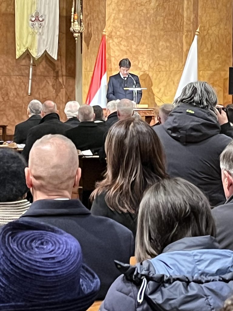 majd a Nepomuki Szent János katolikus templomban Christian Göbel celebrálta német nyelvű misével és beszédekkel folytatódott az országos ünnepi megemlékezés.