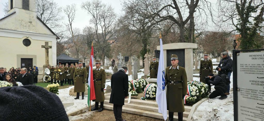 A rendezvények az Ótemetőben kezdődtek, ahol katonai tiszteletadás mellett koszorúzták meg az Országos Német Emlékhelyet,