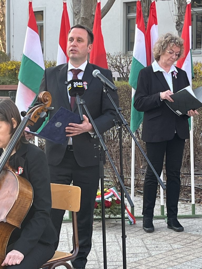 Már az ünnep „elődélutánján” megtartotta március 15-ei ünnepi megemlékezését a budaörsi Fidesz-DNP. A rendezvény díszvendége Dömötör Csaba, európai parlamenti képviselő volt.