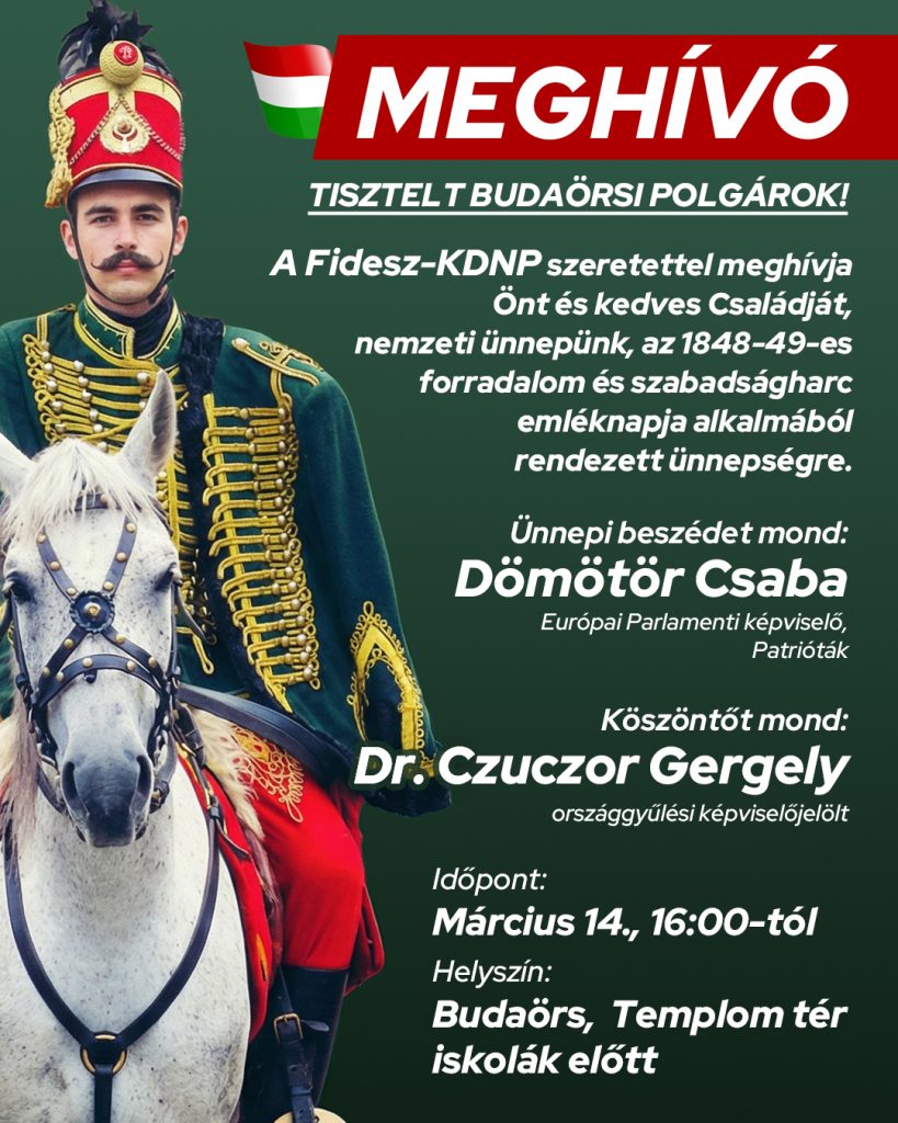 Szombaton 16 órától a Templom téren tartja március 15-ei ünnepi rendezvényét a budaörsi Fidesz-KDNP.